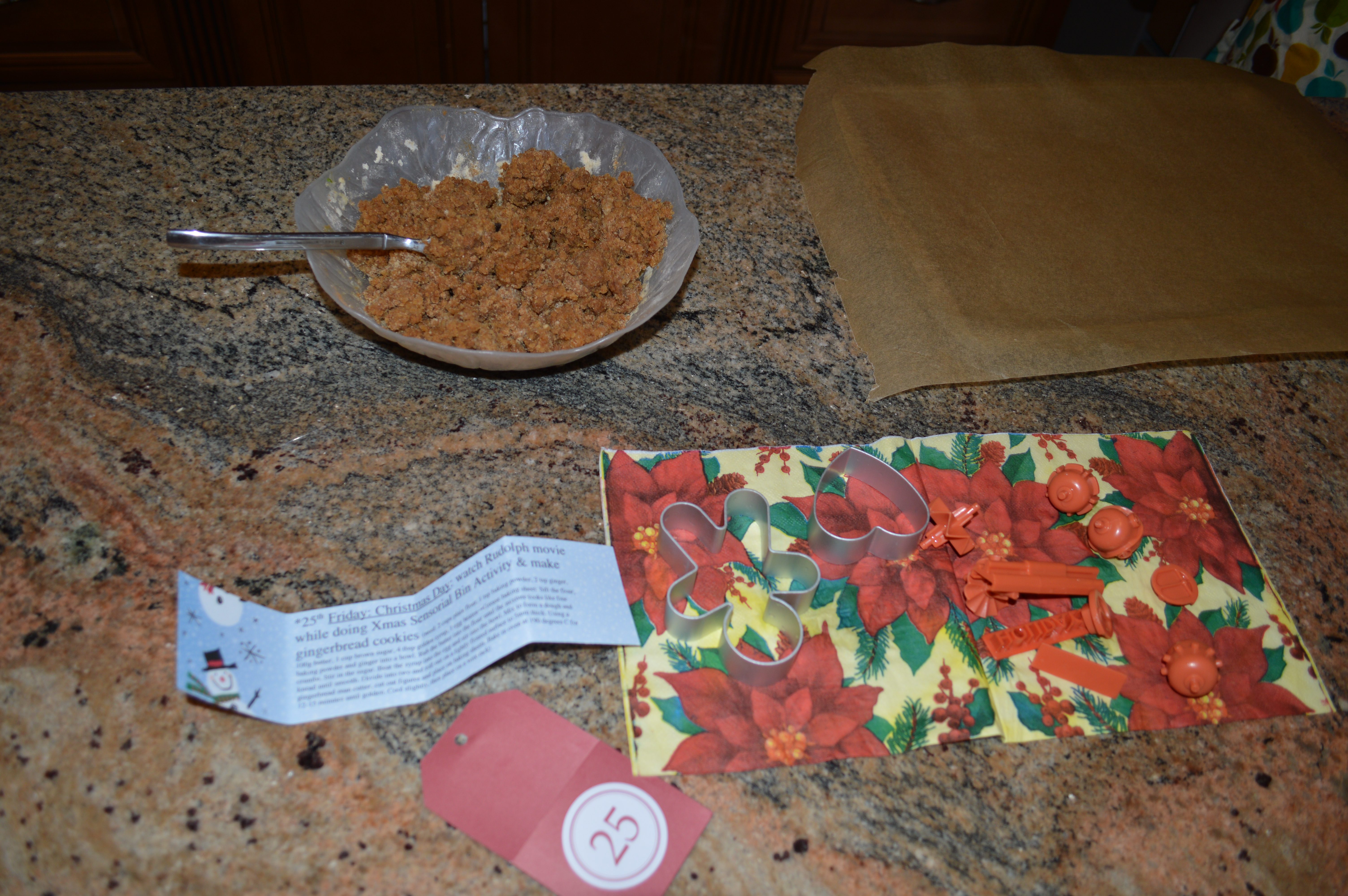 It is Christmas Day – December the 25th, and the children are eager to continue with the Holiday Countdown. For today, besides doing the Christmas sensorial bin activity while watching the Rudolph the Red-Nosed Reindeer movie (a Christmas classic we watch every year), Julia is to make Gingerbread cookies.