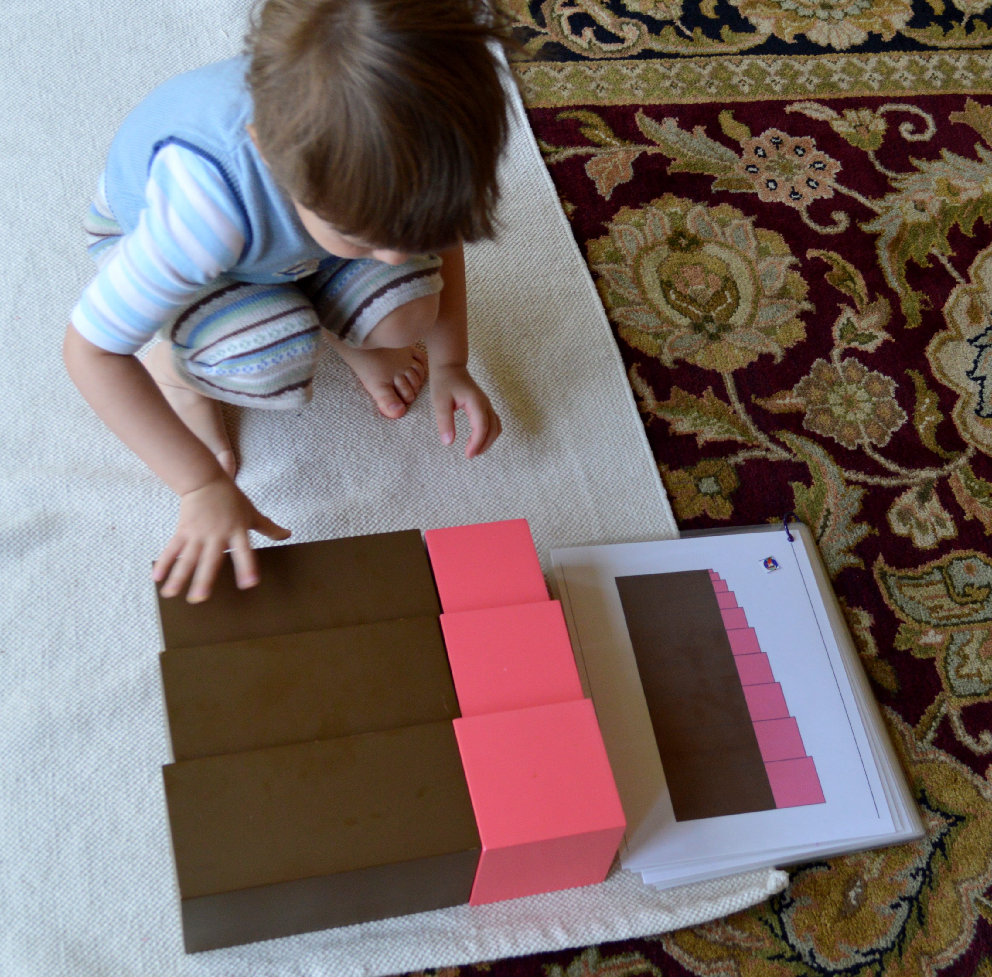 Adrian at 27 months working on Pink Tower & Brown Stairs Extension: