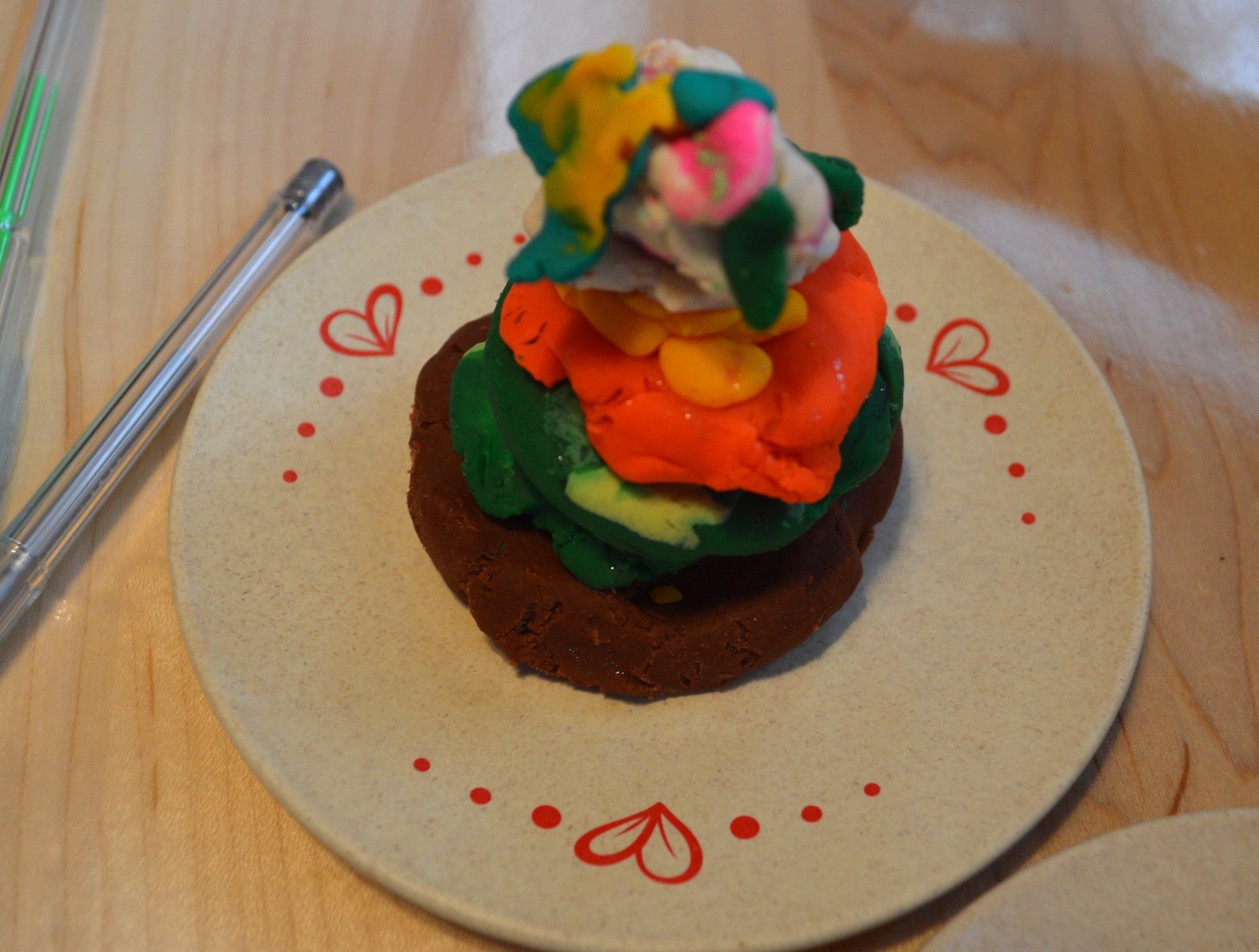 Today, the sister was not around & he went to basics: I showed him how to roll a snake, how to make a ball.. & what he created was more complicated & involved then whatever he ever made using tools.