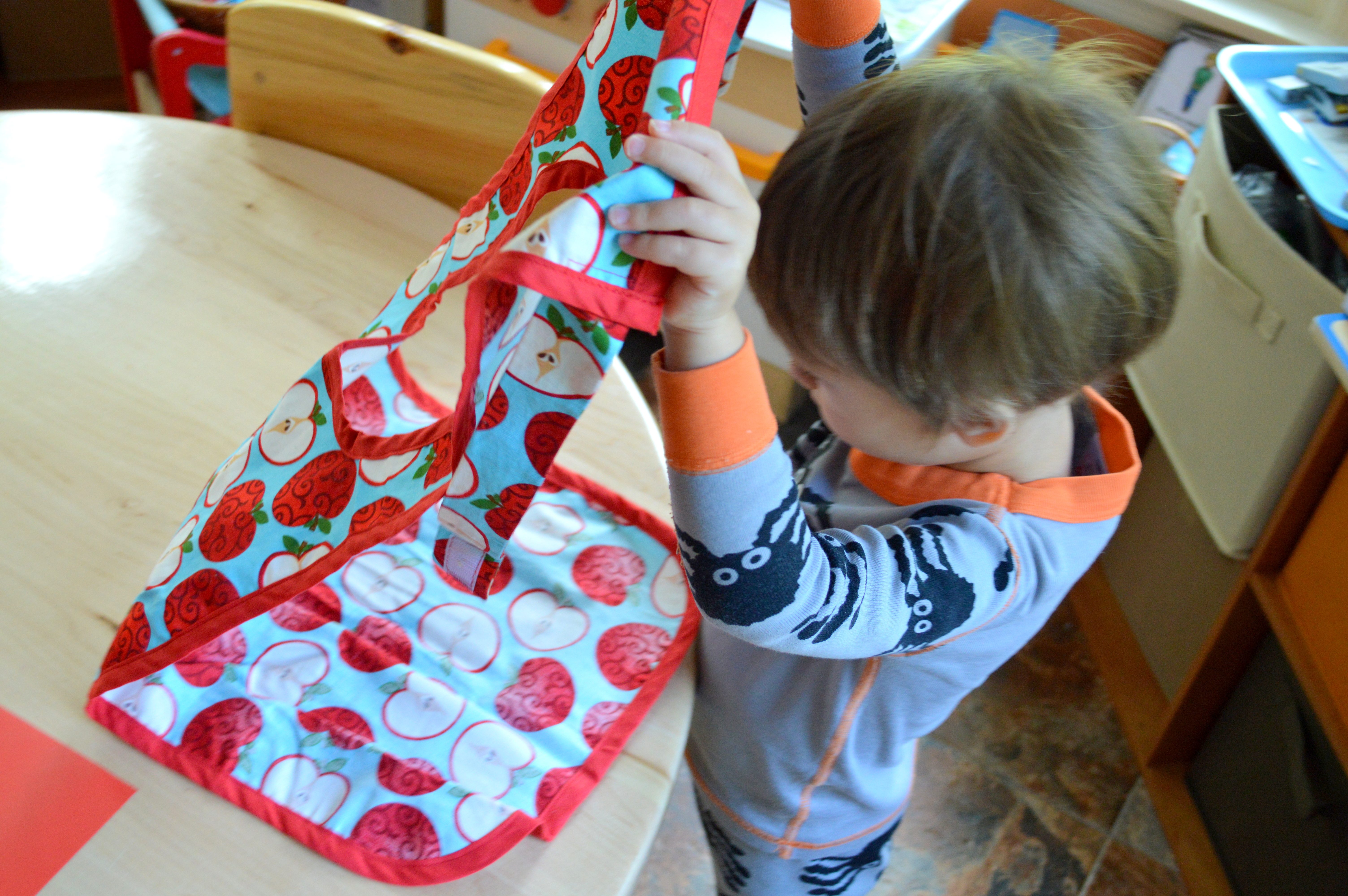 A Montessori Apron, the child should be able to put on independently, without assistance.