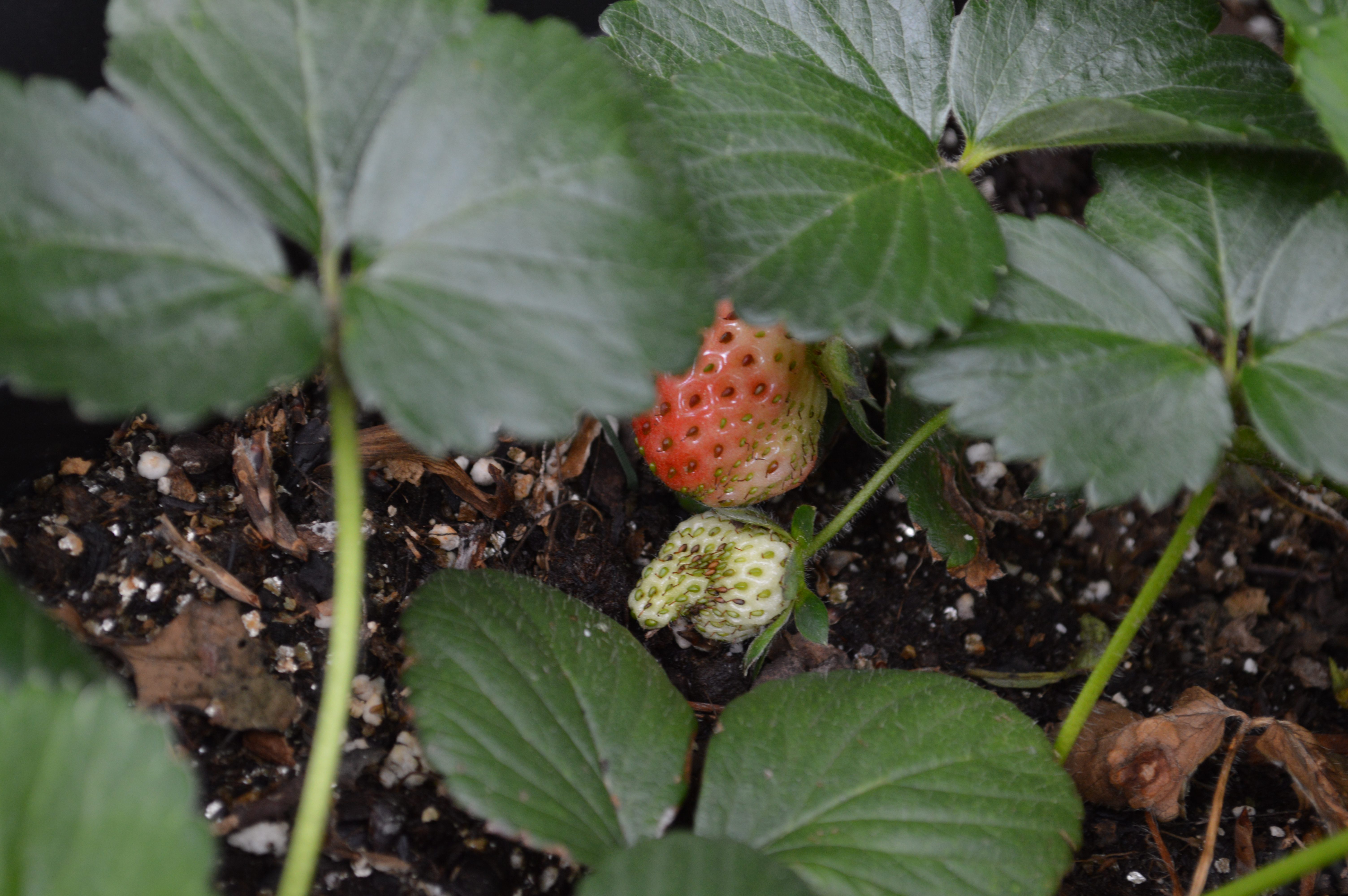 Today, we finally harvested from our "garden" our first strawberries for which Kids have been so patiently waiting for! There was so much excitement on Adrian's face when he saw within one week the white strawberry turning pink, and then eventually red 🙂 He could not wait to show it to Julia and, of course, harvest it!