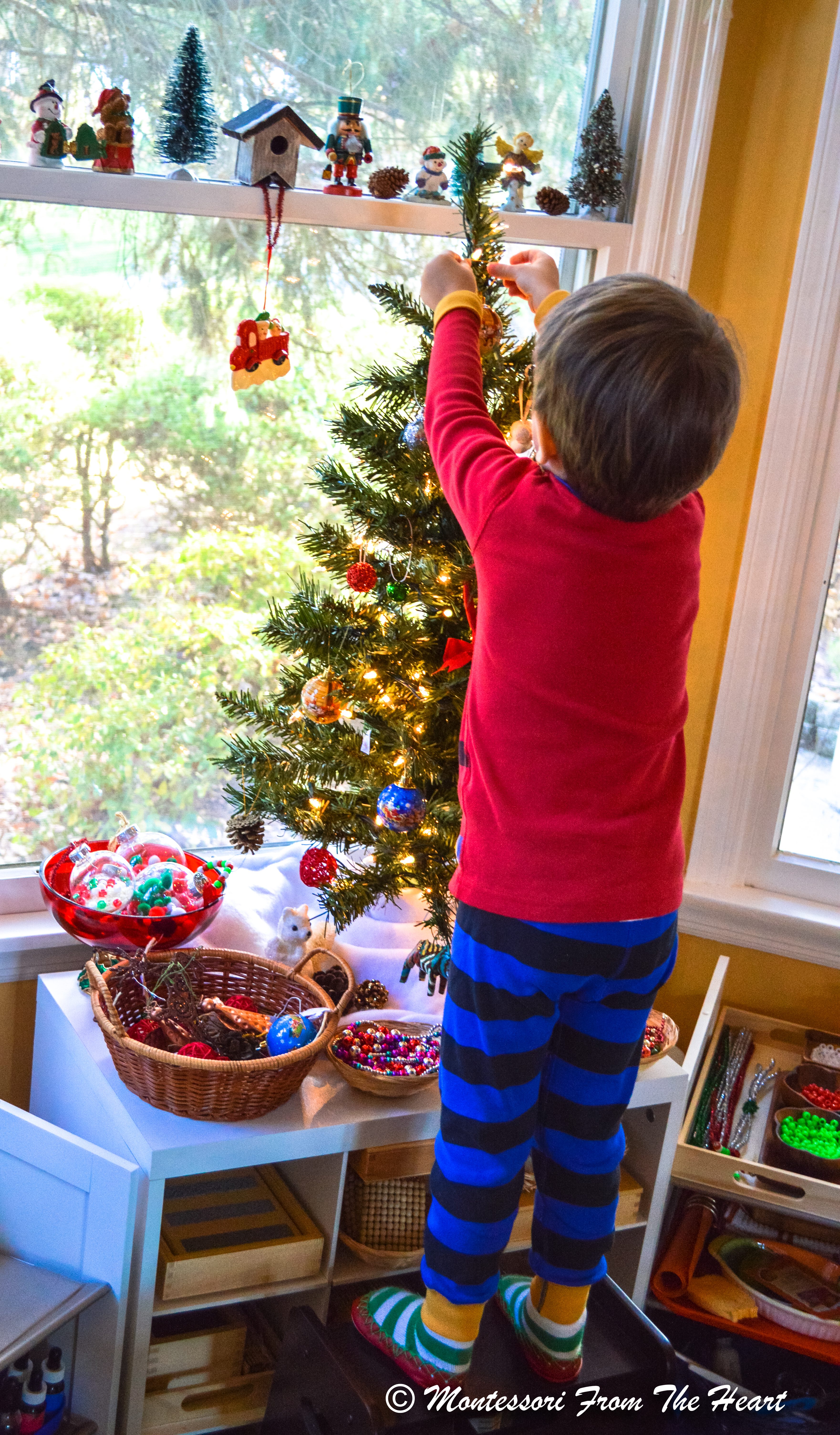 Children are free to take all the decorations down and then redecorate the tree again. However, I am not sure they will:) You can see more of our Christmas inspired learning space here.