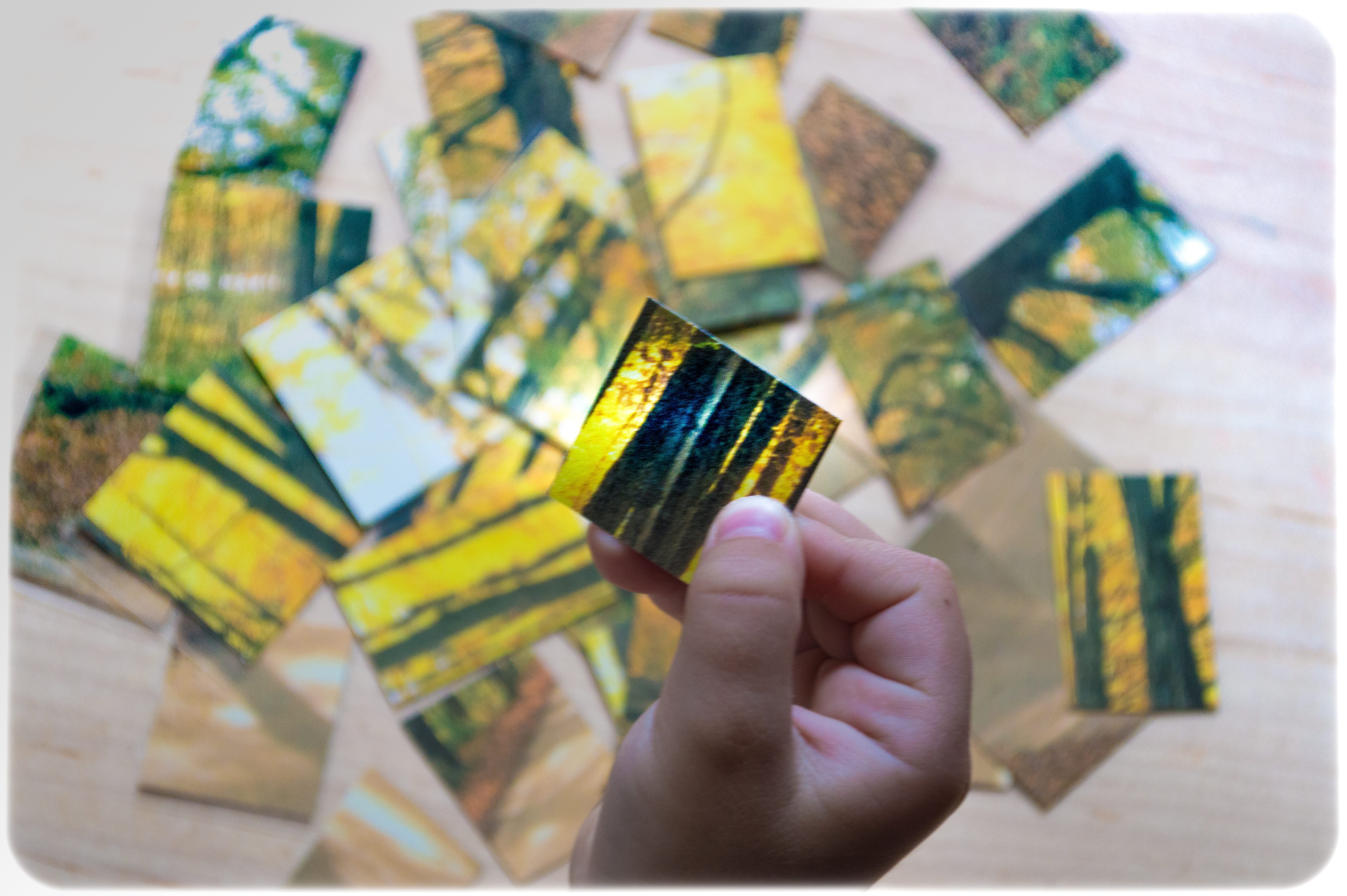 With smaller children, 📉choose a bright image with many distinct objects and cut it in fewer pieces (2 or 4 squares) or simply cut the picture vertically, for easier assembly.