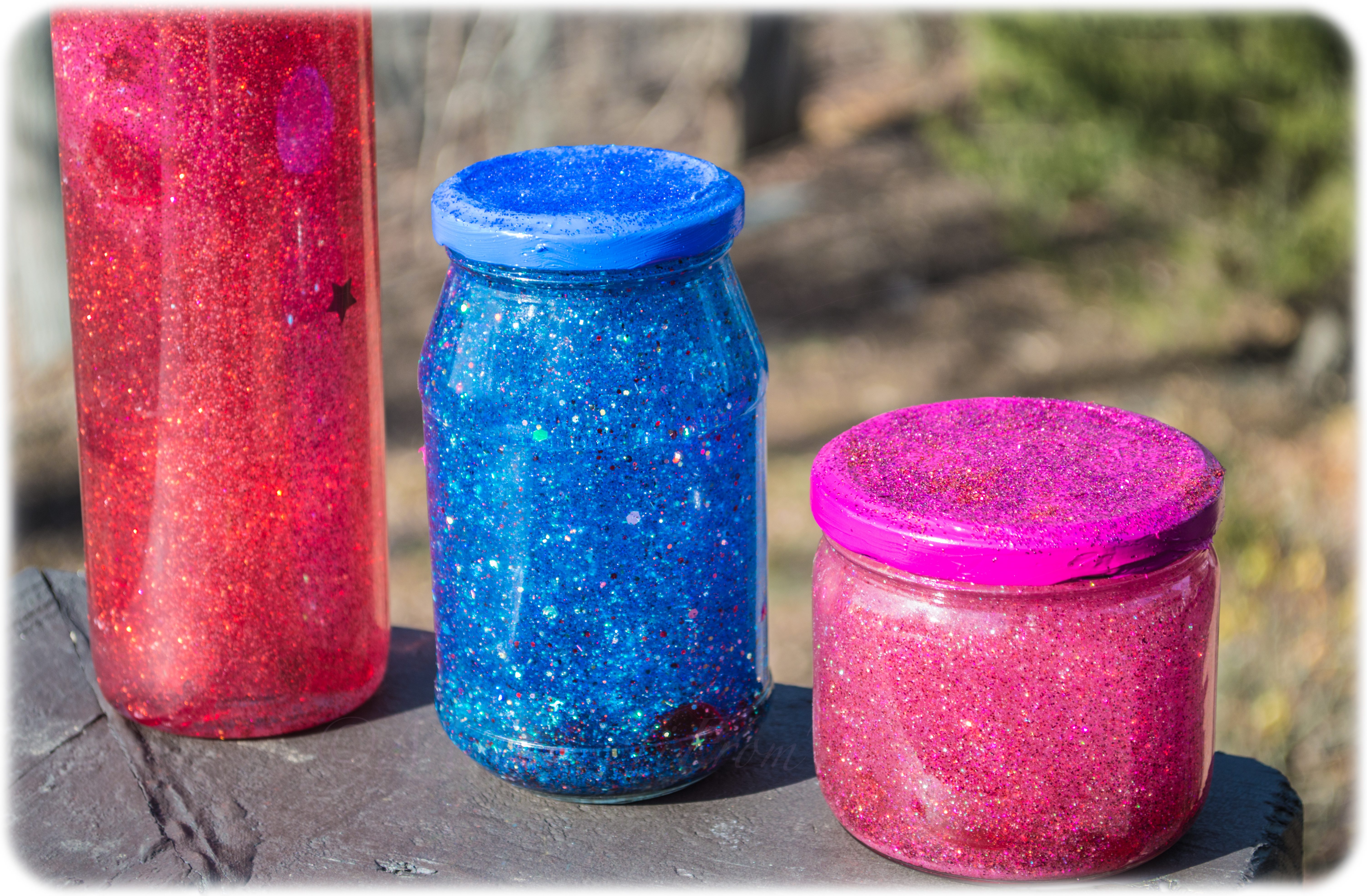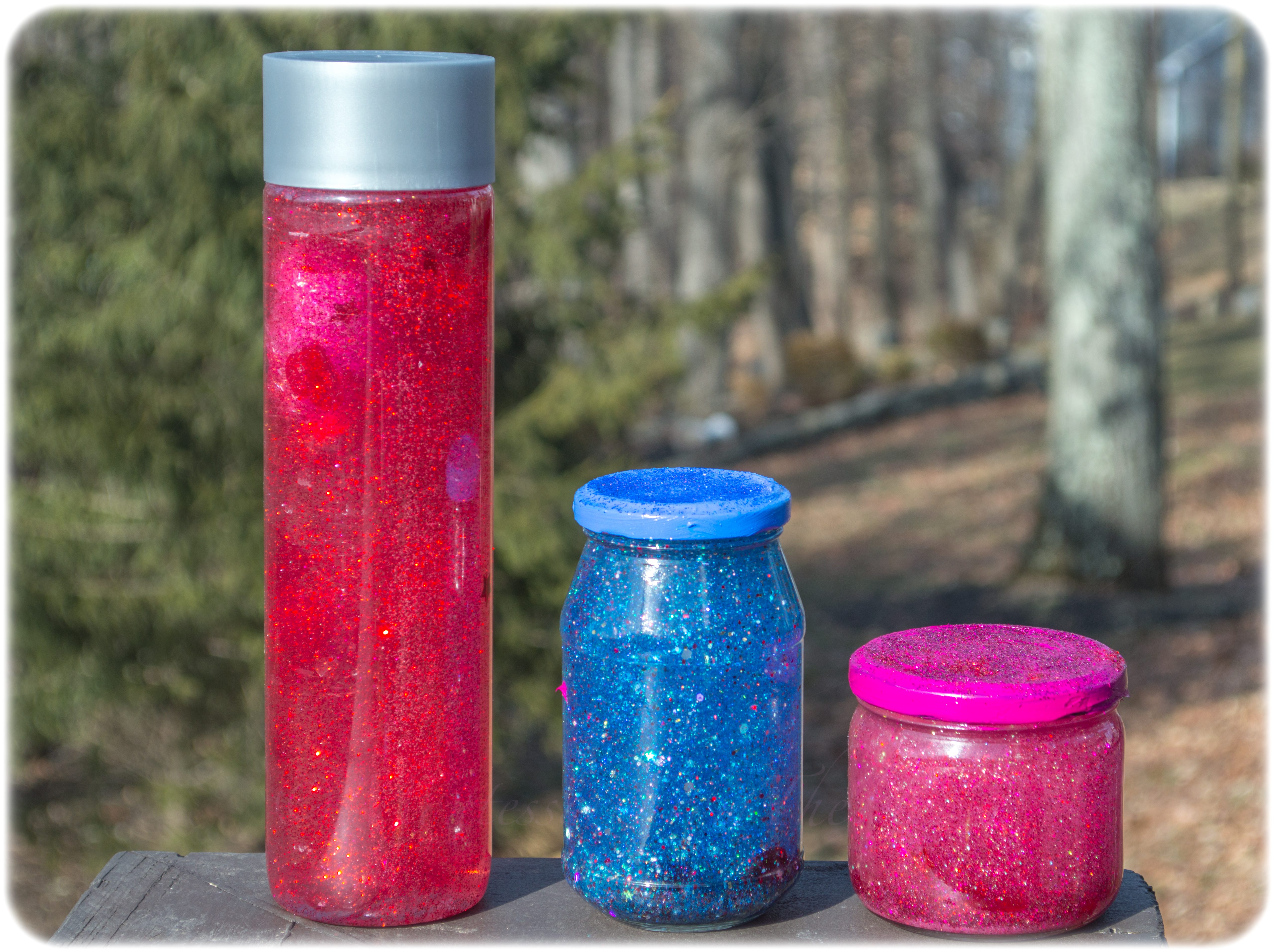 Besides stimulating the child sensorily, these Glitter Jars are a great meditational tool to quiet the mind, gather thoughts, find peace and inner balance, while watching the glitter swirl around and around.
