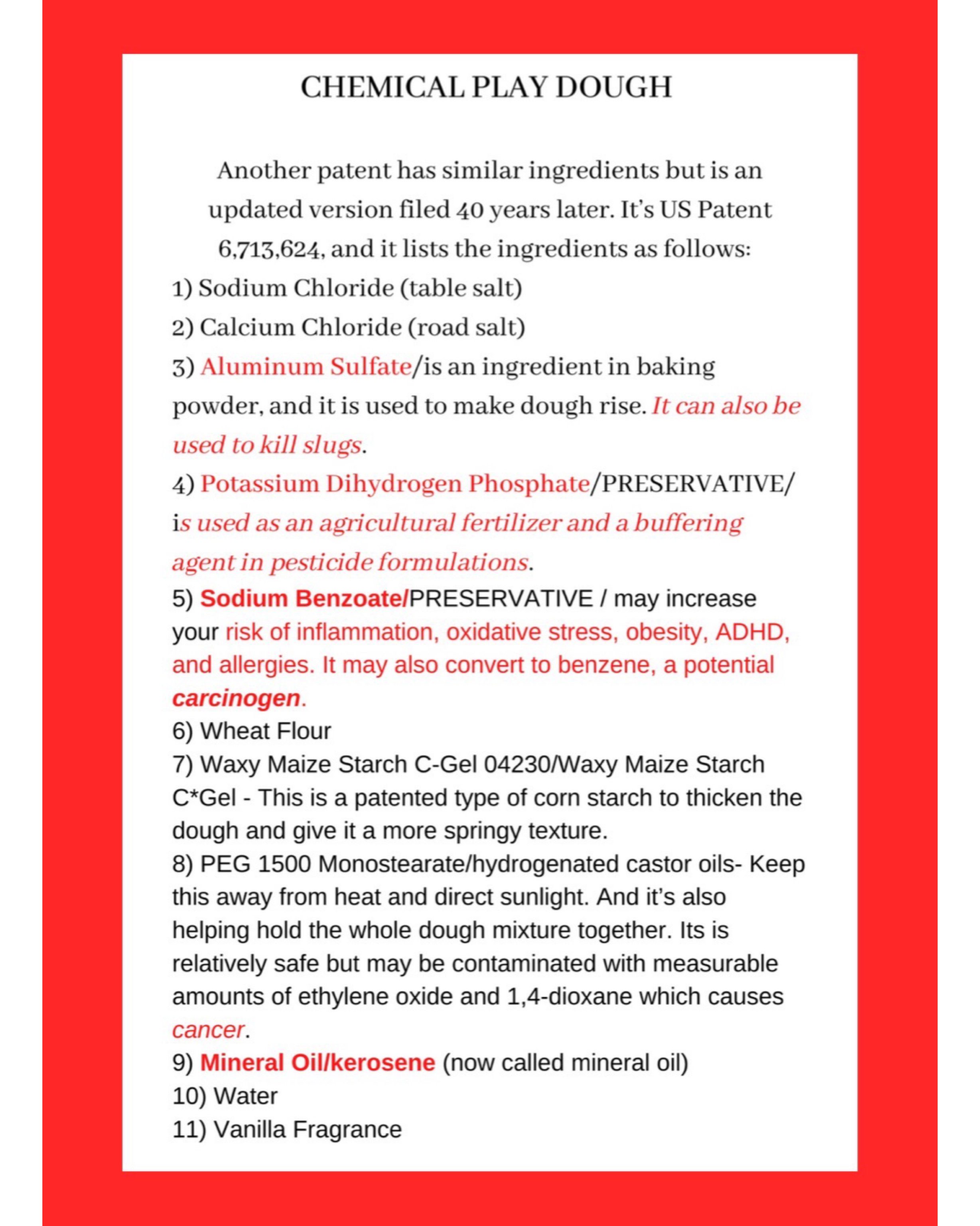 Please NOTE: the PLAY DOUGH is ALL NATURAL completely NON-TOXIC! It has been hand-made from food-grade ingredients by me with love. Only red-colored play dough is scented with strawberry fragrance oil, which can be omitted upon request. And since my play dough has NO artificial chemical preservatives, it WILL develop mold eventually! See HERE the official U.S. approved Patent (1) commercial play dough and HERE US Patent (2). So, the play dough should last from 1-6 months. But please, inspect for black dots (mold) prior to each use and discard immediately if you see any and use my recipe to make a new batch. Please discard it after 6 months.
